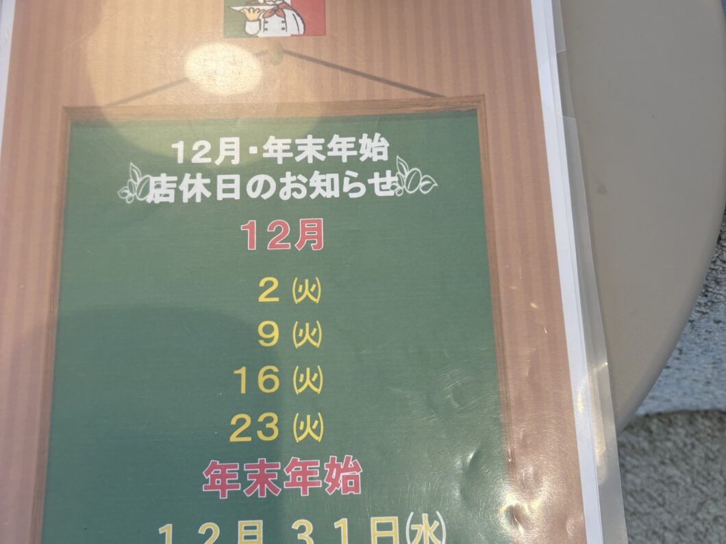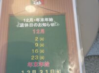 年末年始定休日のお知らせ