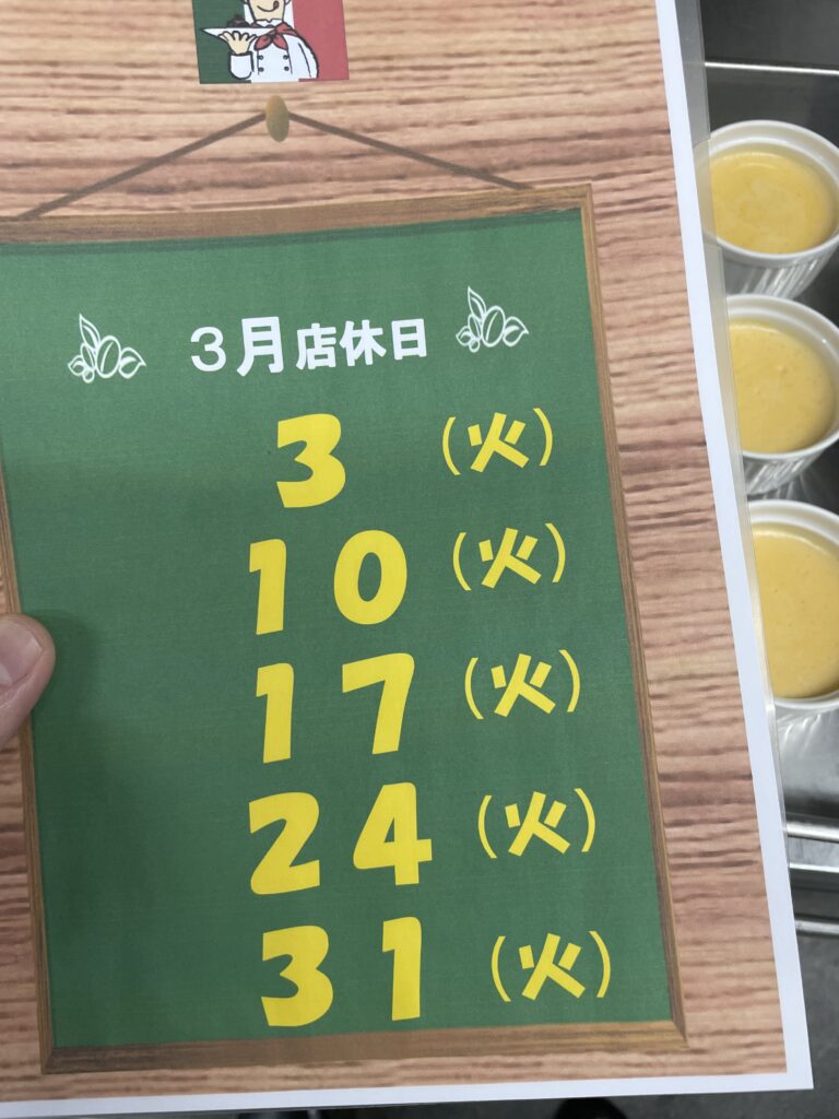 3月店休日のお知らせ